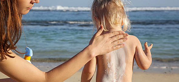Εάν με τον εαυτό μας είμαστε πιο χαλαροί, με τα παιδιά καλό είναι να ακολουθούμε τους κανόνες κατά γράμμα: να επιλέγουμε το σωστό αντηλιακό, να το χρησιμοποιούμε ακόμη και όταν έχει συννεφιά, να το ανανεώνουμε κάθε 2 ώρες και να βάζουμε τη σωστή ποσότητα.