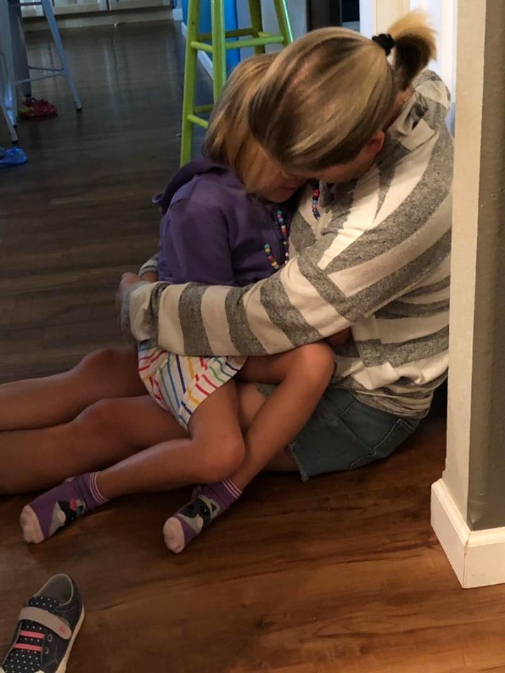 Περάσαμε καθισμένες στο πάτωμα μερικά λεπτά, η μία στην αγκαλιά της άλλης, και επιτρέψαμε στον εαυτό μας να εκτονώσουμε την αγωνία και τον εκνευρισμό μας, μέχρι που τα δάκρυά μας ενώθηκαν. Η αλήθεια είναι πως κλάψαμε κι οι δυο… Έπειτα, ανασυγκροτήθηκα και μάζεψα όση γενναιότητα διαθέτω! Σταθεροποίησα την αναπνοή μου και η κόρη μου συγκέντρωσε όλο το θάρρος της.