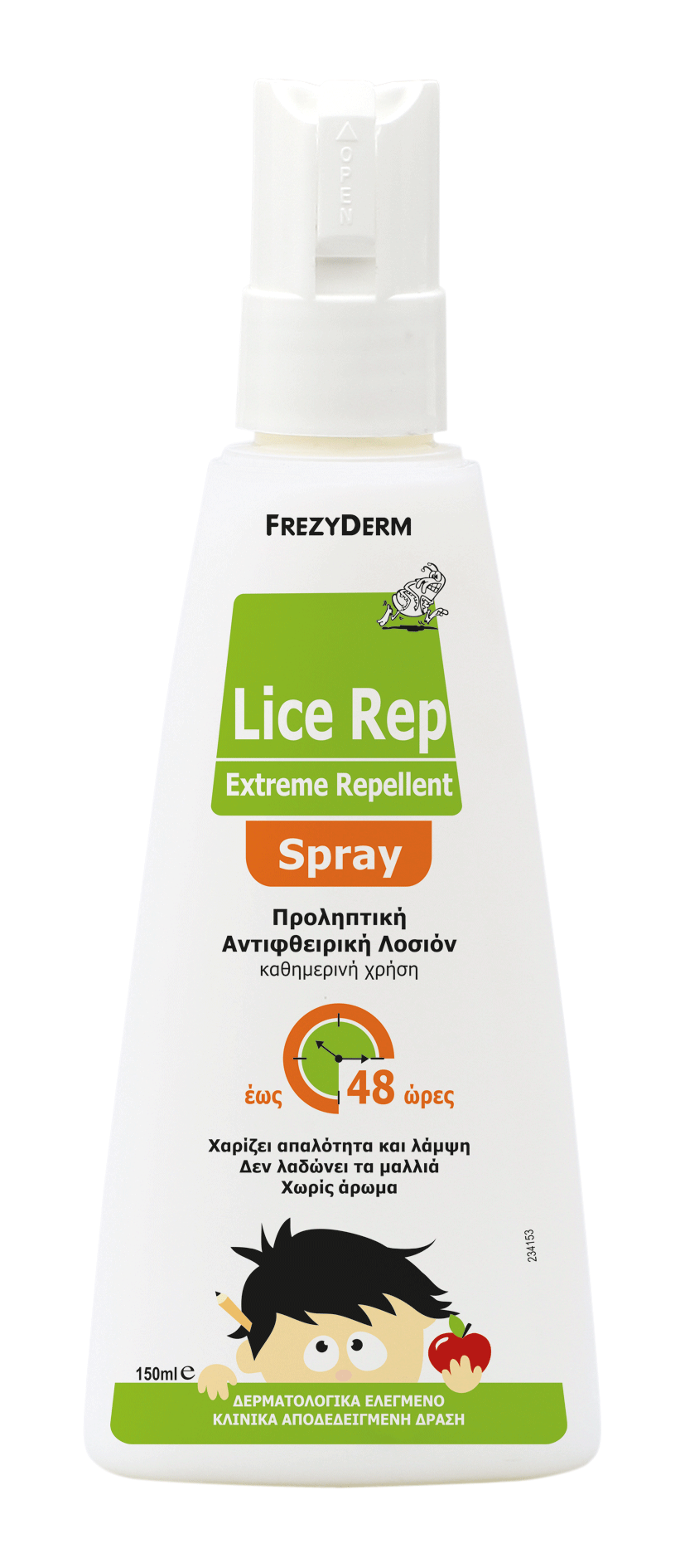 Για να μην κολλήσουν τα κεφαλάκια ανεπιθύμητους επισκέπτες, υπάρχει η προληπτική αντιφθειρική λοσιόν ενισχυμένης δράσης Lice Rep Extreme Spray η οποία χαρίζει στα μαλλιά απαλότητα και λάμψη, χωρίς να τα λαδώνει. Κι έτσι, το «κεφάλαιο ψείρα» τελειώνει πριν καν αρχίσει.