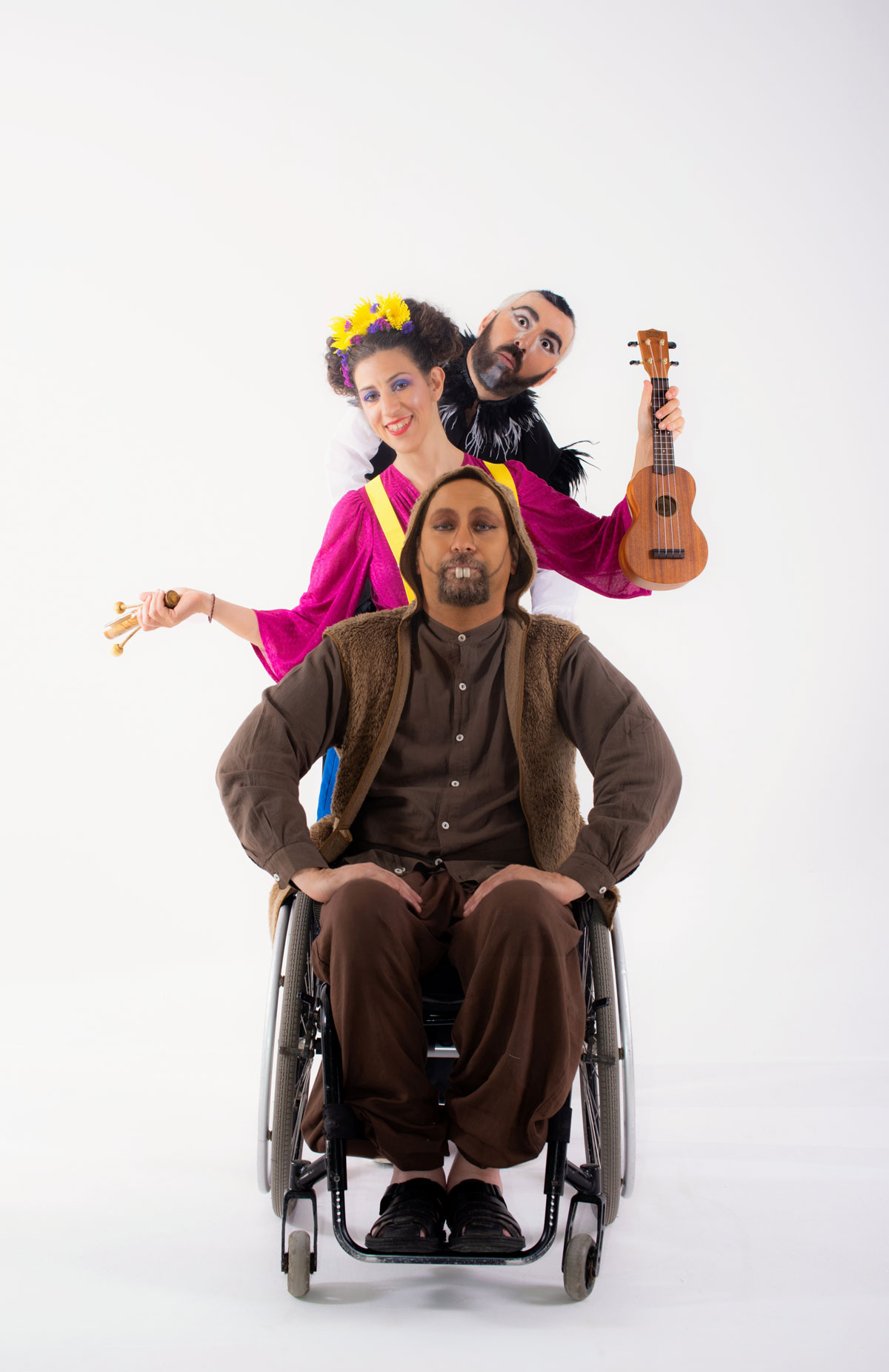 Επί σκηνής δύο ηθοποιοί με κινητική αναπηρία και μία μουσικός χωρίς αναπηρία αποτελούν τη ζωντανή απόδειξη προς τη συναντίληψη, συνεκπαίδευση και συμπερίληψη.