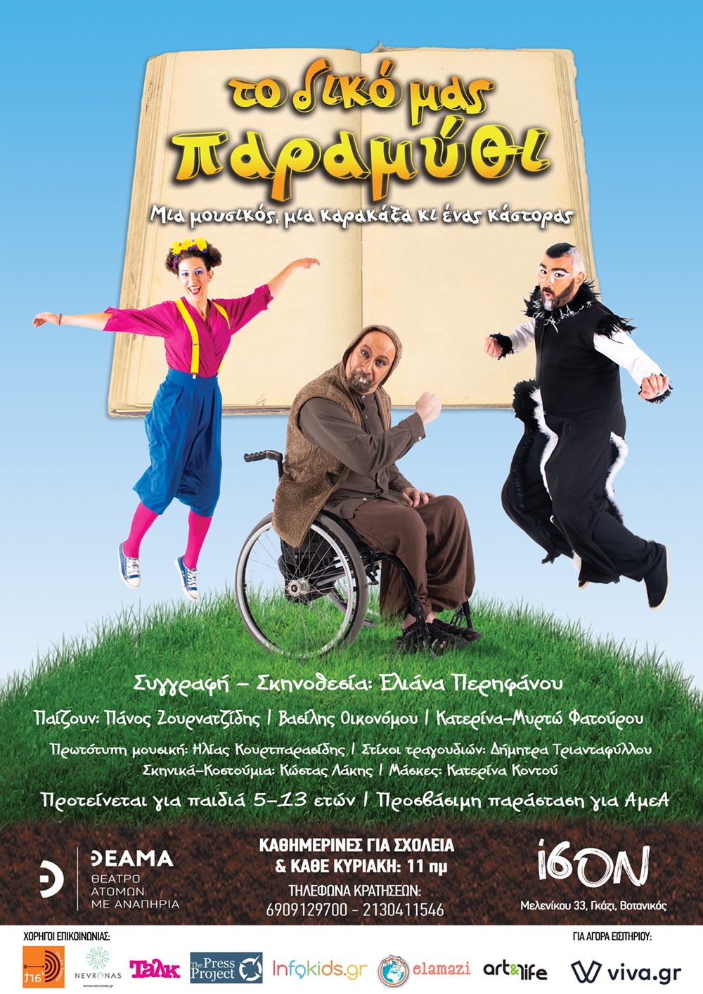 Το ΘΕΑΜΑ (Θέατρο Ατόμων με Αναπηρία), μετά την περσινή επιτυχημένη παιδική θεατρική παράσταση «Νάρκισσος και Ηχώ και άλλες μεταμορφώσεις» παρουσιάζει από τις 13 Οκτωβρίου και για όλη τη θεατρική περίοδο 2019-2020 τη νέα θεατρική παράσταση για μικρούς και μεγάλους «Το δικό μας παραμύθι: μια μουσικός, μια καρακάξα κι ένας κάστορας» στο Θέατρο Ίσον (Μελενίκου 33, Βοτανικός).