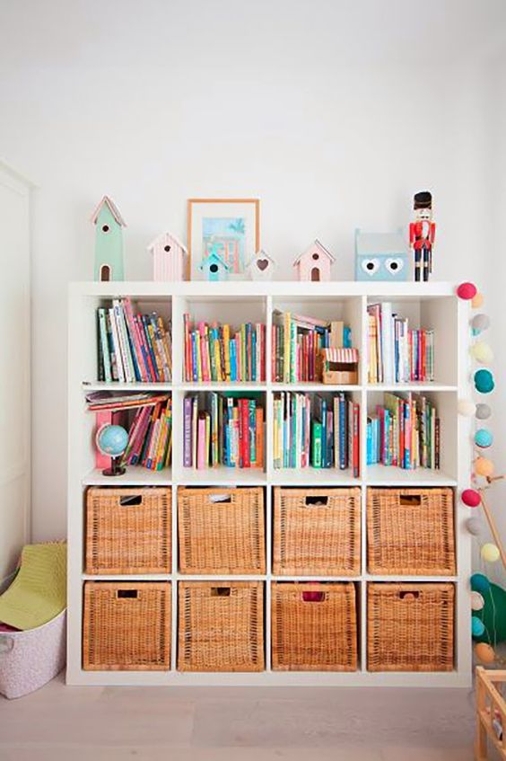 Για να είναι το παιδικό δωμάτιο τακτοποιημένο και να διευκολύνει τη συγκέντρωση του παιδιού στο διάβασμά του, είναι βασικό να είναι μαζεμένη η βιβλιοθήκη. Βάλτε τα βιβλία ανά μέγεθος και αξιοποιήστε τα κάτω ράφια για την αποθήκευση των παιχνιδιών. Τα μεγάλα καλάθια ή τα κουτιά θα σας φανούν πολύ χρήσιμα!
