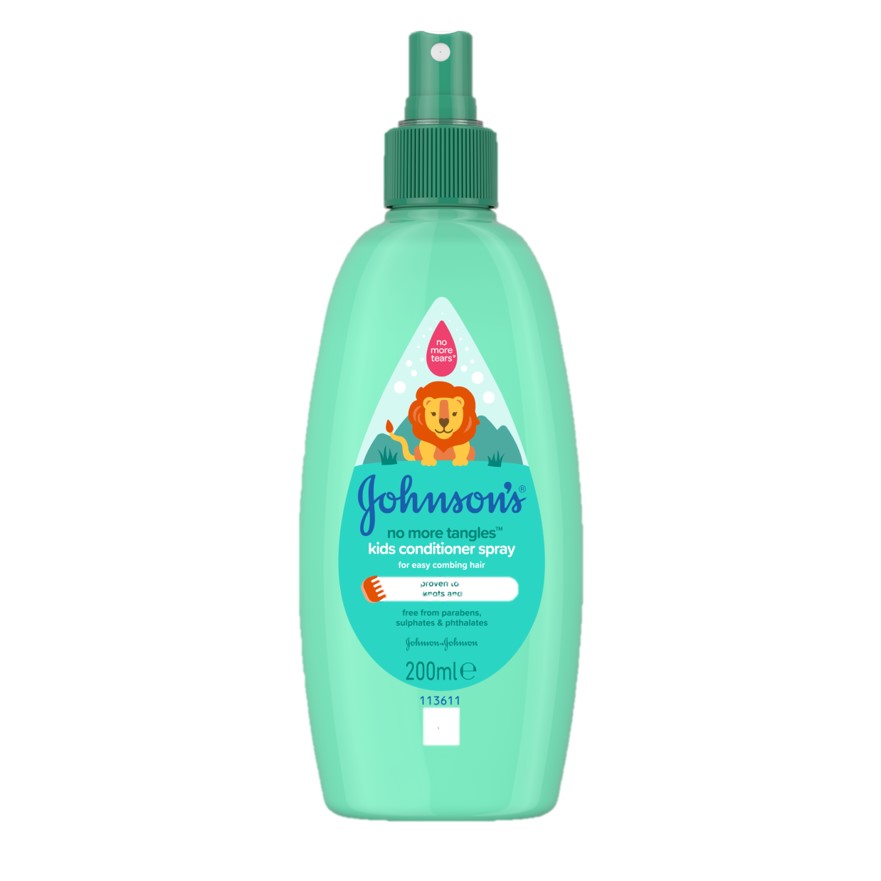 Όλη η σειρά περιποίησης μαλλιών JOHNSON'S® No More Tangles διευκολύνει το χτένισμα ακόμη και σε μακριά και σγουρά μαλλιά και αποδεδειγμένα μπορεί να ξεμπλέξει έως και 75% περισσότερους κόμπους, χάρη στη ρουτίνα τριών βημάτων: λούστε με το No More Tangles® kids shampoo, θρέψτε τις άκρες των μαλλιών με το No More Tangles® kids conditioner και δημιουργείστε το στυλ των μαλλιών με το No More Tangles® kids conditioner σε σπρέι.