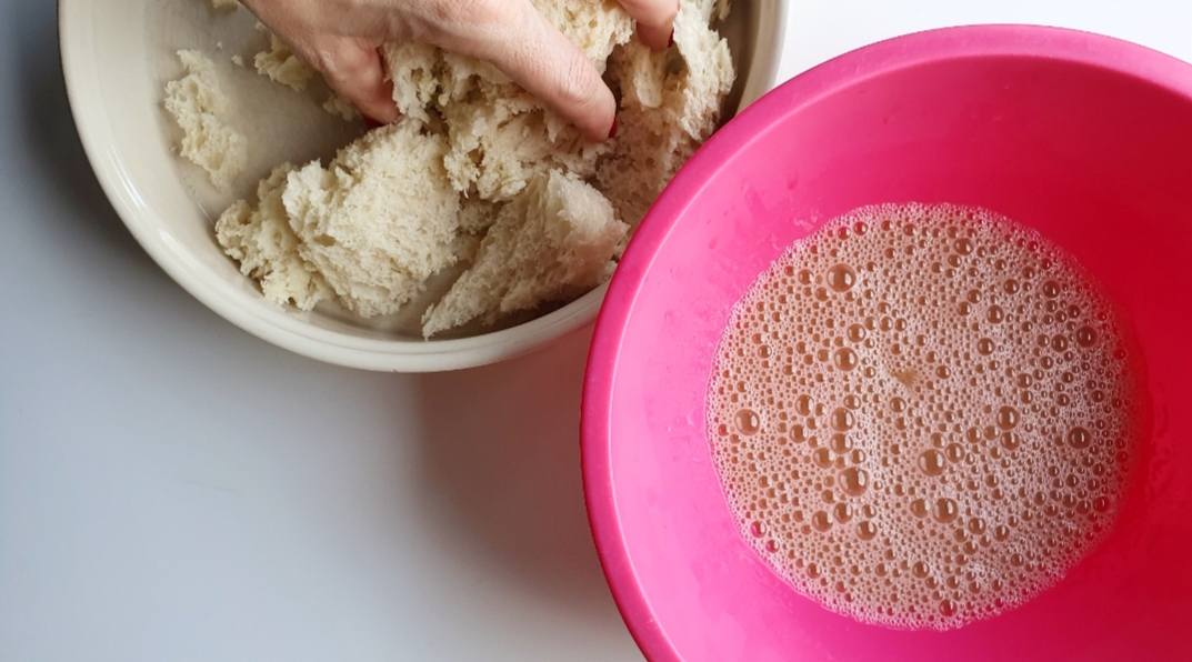 Σ' ένα μπολ ανακατεύετε το αβγό, το ελαιόλαδο και το κρασί. Μέσα σε αυτό, μουλιάζετε την ψίχα.