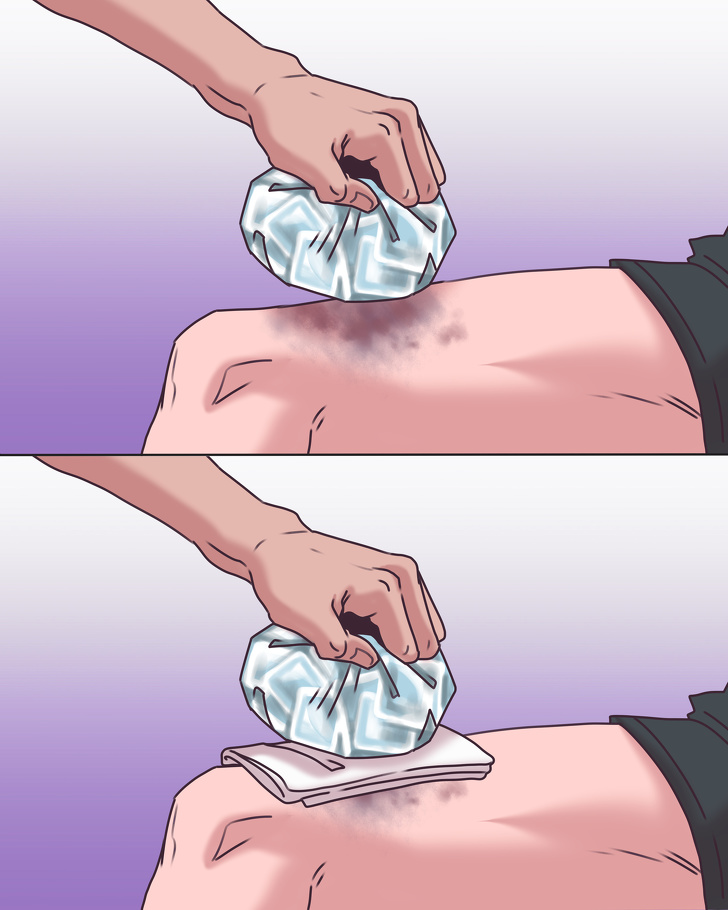 Τι μπορείτε να κάνετε: τυλίξτε τον πάγο σε μια πετσέτα ή σε οποιοδήποτε άλλο ύφασμα. Ακουμπήστε τον στην τραυματισμένη περιοχή αμέσως μετά το τραύμα, αλλά μην τον κρατάτε για περισσότερο από 10 λεπτά ταυτόχρονα.
