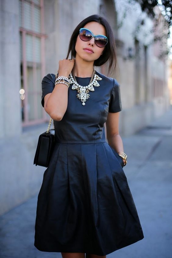 Όπως έχουμε ξαναπεί, τα δερμάτινα φορέματα και κολάν παραμένουν και φέτος στη μόδα, ενώ μπορούν σας βγάλουν από τη δύσκολη θέση και στο ρεβεγιόν! Ένα μαύρο δερμάτινο φόρεμα, για παράδειγμα, φορεμένο με λαμπερά αξεσουάρ και παπούτσια, είναι εξαιρετικό outfit για το ρεβεγιόν.