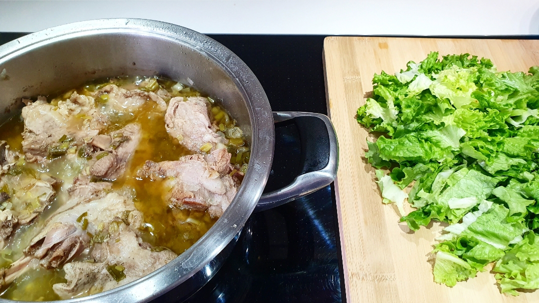 Πλένετε σχολαστικά τα μαρούλια και τα κόβετε σε χοντρά κομμάτια. Όταν το κρέας έχει γίνει, τα προσθέτετε στην κατσαρόλα και αφήνετε το φαγητό να βράσει για λίγα λεπτά ακόμη, ώσπου να «λιώσουν».