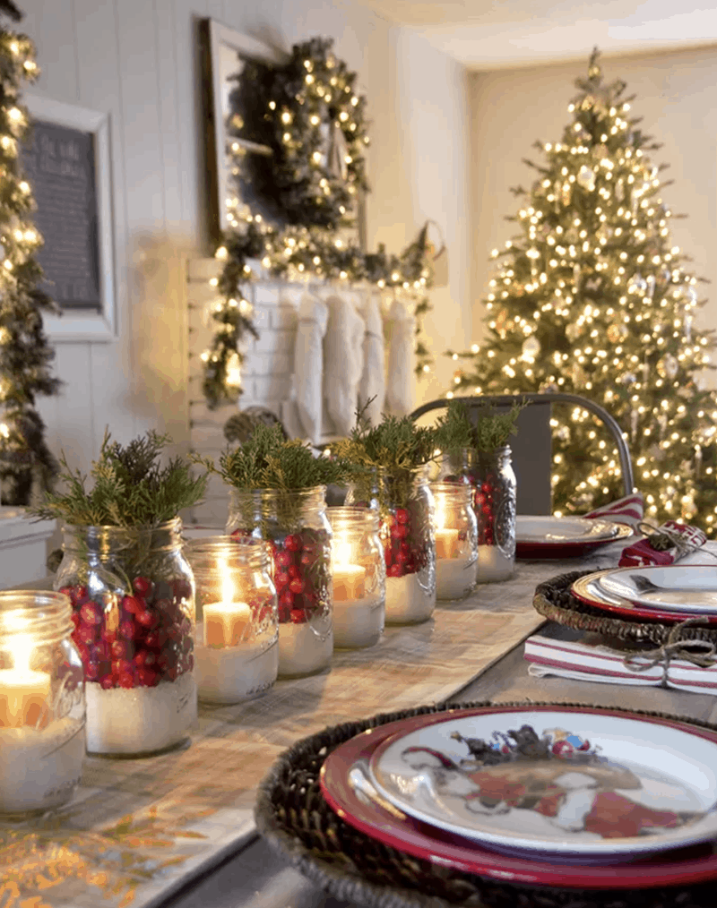 Τα Χριστούγεννα είναι μια γιορτή που πάει πολύ με την κατανυκτική ατμόσφαιρα και τα γιορτινά κεριά. Χαμηλώστε τα φώτα και στολίστε το τραπέζι με όμορφα διακοσμημένα κεριά, σε εντυπωσιακά δοχεία και κηροπήγια.