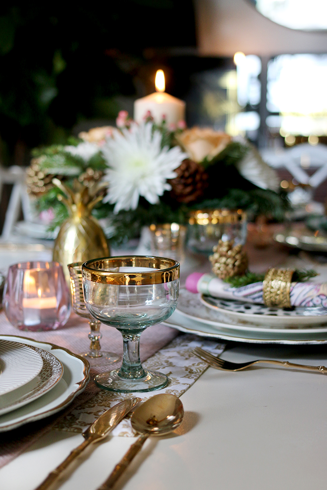 Ένα πολύ σημαντικό στοιχείο του γιορτινού τραπεζιού είναι τα διαφορετικά ποτήρια – για το απεριτίφ, το νερό, το κρασί, αλλά και το χωνευτικό. Αν τα ποτήρια σας είναι μίνιμαλ, μπορείτε να δώσετε μια αριστοκρατική νότα στο τραπέζι, χρησιμοποιώντας βίντατζ ποτήρια για το απεριτίφ ή το χωνευτικό λικέρ (που αξίζει, σίγουρα, να συμπεριλάβετε στο μενού).