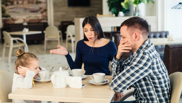 Το να λύσετε μια διαφωνία που αφορά το παιδί μπροστά στα μάτια του, πέρα απ’ το ότι δεν οδηγεί πουθενά, δίνει και σ’ εκείνο το μήνυμα ότι έχει διαφορετική αντιμετώπιση από κάθε γονιό και μπορεί να το χειριστεί υπέρ του. Γι’ αυτό, ο ένας από τους δύο πρέπει να υποχωρεί πριν γίνει αντιληπτό ότι διαφωνεί και η συζήτηση να αναβάλλεται για αργότερα χωρίς το παιδί να γνωρίζει για τη διχογνωμία που έχει προκαλέσει.