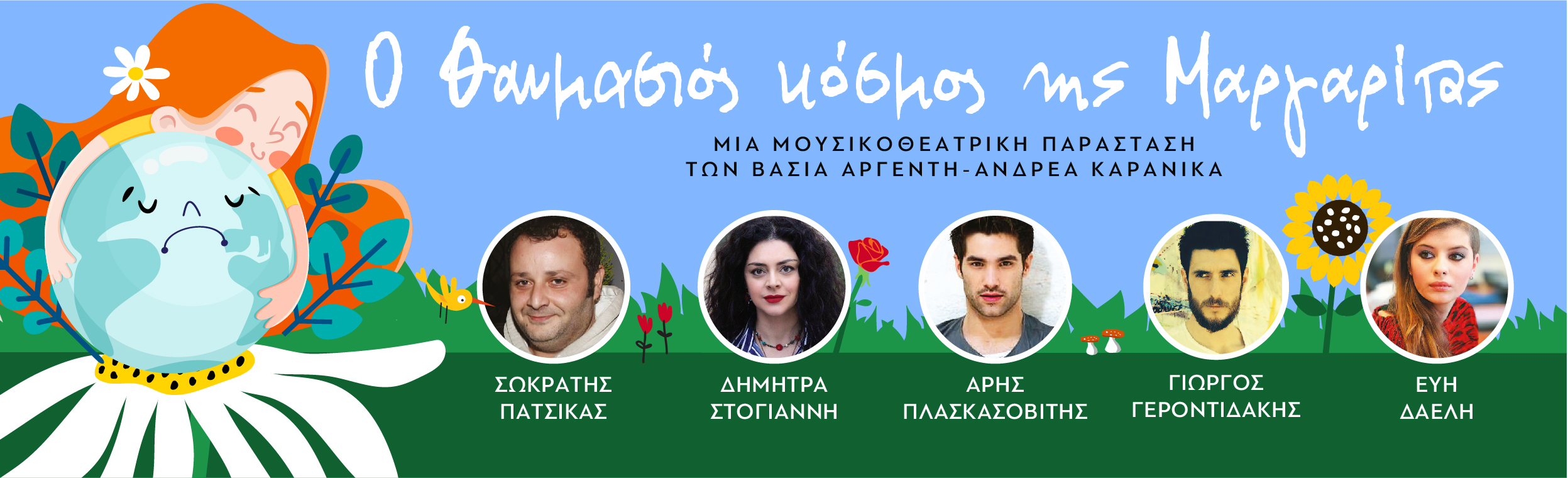 Ανάμεσα στους υπέροχους ήρωες μας την Μαργαρίτα, την Τριανταφυλλιά, τον Ήλιο και τον Γερο-Πλάτανο εμφανίζεται σε ρόλο έκπληξη ο Σωκράτης Πατσίκας που ανατρέπει τις ισορροπίες και κάνει πρωταγωνιστές για λίγο τους μικρούς μας θεατές δίνοντας τους ενεργό ρόλο σε αυτό το θεατρικό μονοπάτι, που είναι γεμάτο από ταξίδια σε χώρες όλου του κόσμου, χιούμορ, συγκινήσεις, προβληματισμούς και βρίθει εννοιών που ενισχύουν την οικολογική συνείδηση σε μικρά και μεγάλα παιδιά.