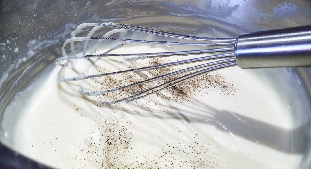 Για την μπεσαμέλ, λιώνετε το βούτυρο και προσθέτετε σ’ αυτό το αλεύρι. Ανακατεύετε καλά με τον σύρτη. Ζεσταίνετε το γάλα μέχρι να γίνει χλιαρό σ’ ένα κατσαρολάκι ή στον φούρνο μικροκυμάτων και το προσθέτετε στο μείγμα. Ανακατεύετε πολύ καλά μέχρι το μείγμα να γίνει κρέμα. Τέλος, προσθέτετε το αλατοπίπερο.