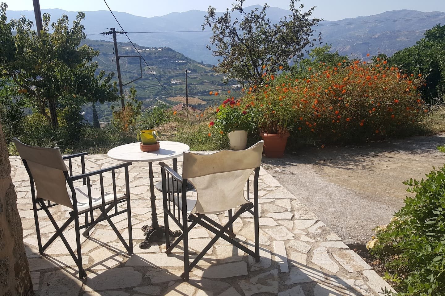 Σκαρφαλωμένο στην κορυφή του λόφου που αγκαλιάζει την Βορειοδυτική πλευρά του Βαλτεσίνικου, προσφέρει στους επισκέπτες του σπάνια περιμετρική θέα που κυριολεκτικά κόβει την ανάσα, ανατολικά προς τον ορεινό όγκο του Μαινάλου και τις βουνοκορφές της Κορινθίας και δυτικά προς τα Αχαϊκά όρη και τη θάλασσα του Ιονίου, όπου δύει μοναδικά ο ήλιος. Τα πέτρινα δωμάτια με τζάκι και η φιλοξενία των ιδιοκτητών θα σας κερδίσει αμέσως!