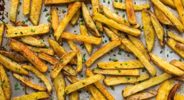 Καθαρίζετε τις πατάτες, τις πλένετε και τις κόβετε σε μπαστουνάκια ή ροδέλες, όπως ακριβώς θα κάνατε για τις τηγανητές.