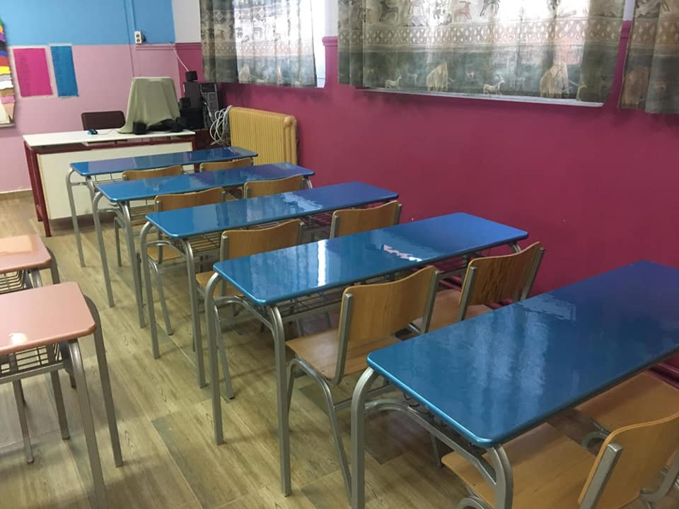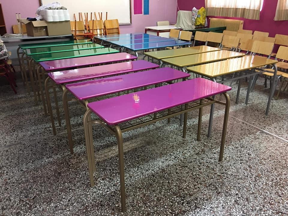 Οι πιο πρόσφατες έρχονται απ’ την Πιερία και το Δημοτικό Σχολείο και Νηπιαγωγείο Καρίτσας, όπου ο Σύλλογος Γονέων και Κηδεμόνων φρόντισε να ανακαινιστούν καρέκλες και θρανία και να βαφτούν με πολλά διαφορετικά και λαμπερά χρώματα.