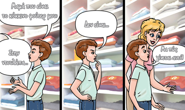 Η γνωστή σε όλους μας στιχομυθία είναι ίσως η πιο τρανή απόδειξη ότι οι μαμάδες έχουν μια υπερδύναμη: ξέρουν πού βρίσκεται το καθετί. Ακόμη και αν το φούτερ ή το παντελόνι είναι μπροστά στα μάτια σου, δεν θα το βρεις-αν δεν φωνάξεις τη μαμά σου!