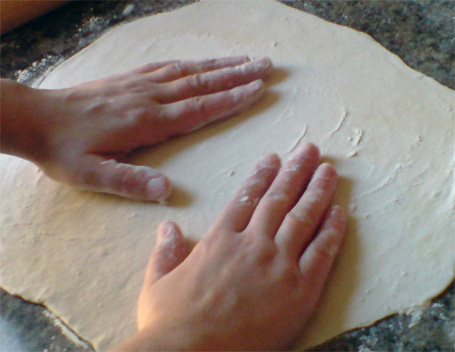 Μόλις ετοιμαστεί η ζύμη, την χωρίζουμεσε δυο μέρη. Το κάτω φύλλο πρέπει να είναι παραπάνω από το πάνω φύλλο. Αφού αλευρώσουμε τον παγκο μας «ανοίγουμε» τα φύλλα μας.