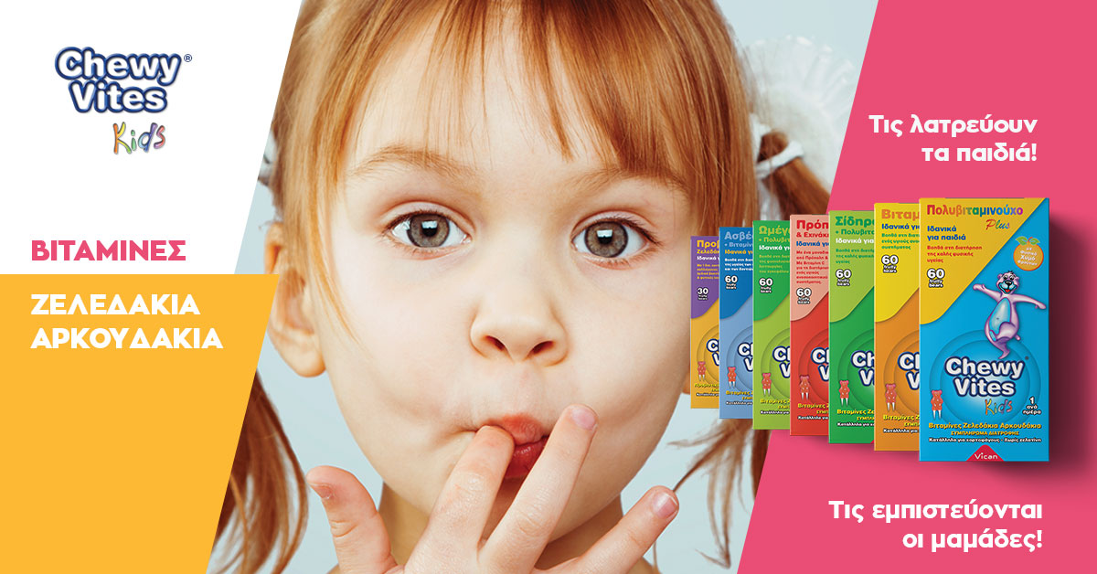 Τα Chewy Vites από την Vican είναι μια ολοκληρωμένη σειρά παιδικών συμπληρωμάτων διατροφής που βρίσκουμε σε όλα τα φαρμακεία. Περιλαμβάνει 6 τύπους βιταμινών (για παιδιά άνω του 1 έτους), αλλά και προβιοτικά (για παιδιά άνω των 3 ετών) με φιλικά βακτήρια και φυτικές ίνες για την καλή υγεία του πεπτικού συστήματος. Δίνουμε λοιπόν από 1 αρκουδάκι την ημέρα στα παιδιά, ή 1 αρκουδάκι σε παιδιά μέχρι 3 ετών και 1-2 για άνω των 4 αν επιλέξουμε τα προβιοτικά, και ενισχύουμε τη διατροφή τους με τις βιταμίνες που τους λείπουν. Έτσι, εξασφαλίζουμε όχι μόνο καλή απόδοση στα μαθήματά του, αλλά και τη γενικότερη υγεία του, τόσο κατά τη διάρκεια όσο και μετά την καραντίνα.