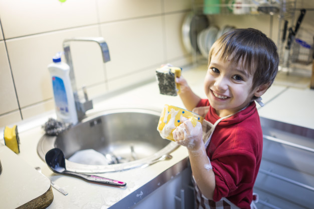 - Εάν το παιδί είναι μεγαλύτερο, δοκιμάστε να του δώσετε κάποια λερωμένα σκεύη να πλύνει. Η επιμέλειά του μπορεί να σας ξαφνιάσει! Μάλιστα, αν είναι πάνω από 6-7 ετών, μπορεί να καθαρίσει ακόμα και γυάλινα ποτήρια ή μαχαιροπήρουνα.