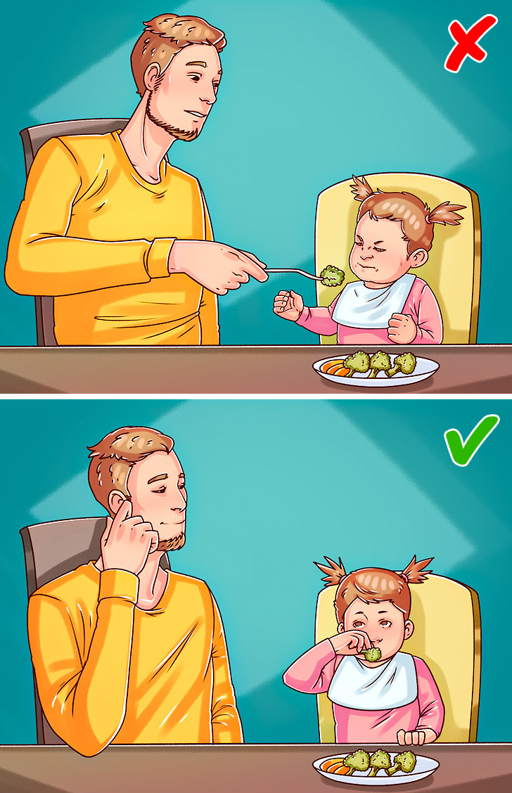 Ίσως χρειαστεί να δοκιμάσετε έως και 12 φορές να δώσετε στο παιδί μια νέα γεύση μέχρι να την δοκιμάσει και να την συνηθίσει. Μην το βάλετε κάτω και συνεχίστε την προσπάθεια! Αφήστε το να την επεξεργαστεί και ποτέ μην το ενθαρρύνετε με κάποια επιβράβευση για να το φάει γιατί έτσι θα συνδυάσει τις επιβραβεύσεις (π.χ. τα γλυκά) με κάτι καλό και τα λαχανικά που αρνείται να δοκιμάσει με κάτι κακό.