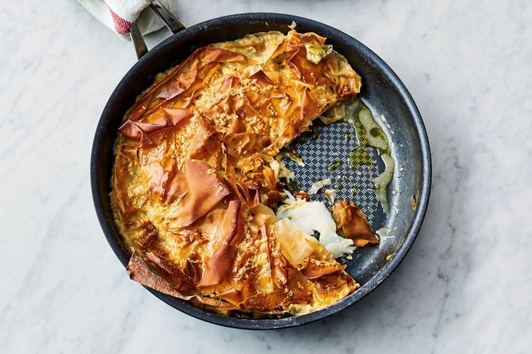 Ψάρι: Πίτα με μπακαλιάρο, σπανάκι και τσένταρ