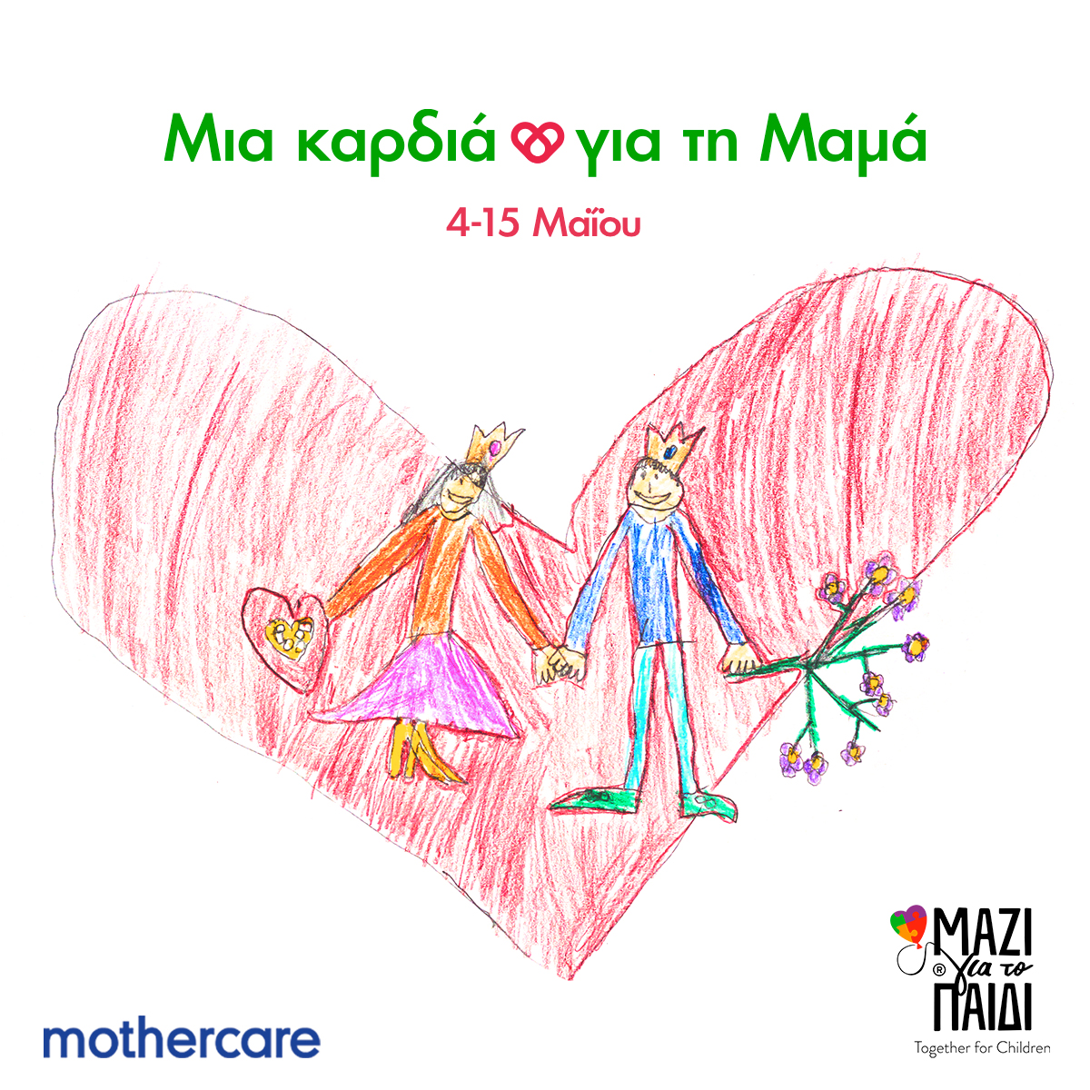 - Για καθεμία ζωγραφιά που αναρτάται στη συγκεκριμένη φόρμα η Mothercare θα προσφέρει 1€ στο «Μαζί για το Παιδί», ενώ όλες οι ζωγραφιές θα ενωθούν φτιάχνοντας μια μεγάλη καρδιά που θα συμβολίζει την αγάπη μας για όλες τις μαμάδες.