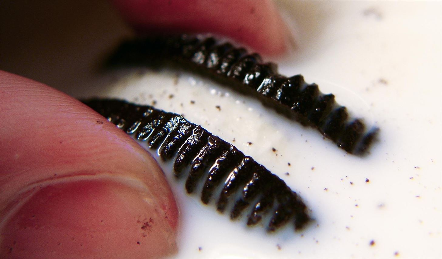 Βάζουμε το γάλα σ' ένα μπολ και βουτάμε ένα ένα τα μπισκότα για μερικά δευτερόλεπτα (μη μουλιάσουν και διαλυθούν).