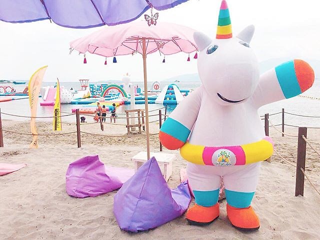 Η ατελείωτη διαδρομή πάνω στο νερό περιλαμβάνει πύργους, γέφυρες, εκτοξευτές ανθρώπων, κούνιες, τραμπολίνα κι ένα σωρό άλλα εμπόδια που συναρπάζουν τους επισκέπτες. Για τα μικρότερα παιδιά, βέβαια, υπάρχουν ασφαλέστερα παιχνίδια, ενώ όσοι θέλουν να χαλαρώσουν μπορούν να αράξουν στη μαγευτική πλαζ που είναι διακοσμημένη στα χρώματα του… μόνοκερου ο οποίος είναι το σήμα κατατεθέν του θαλάσσιου πάρκου.