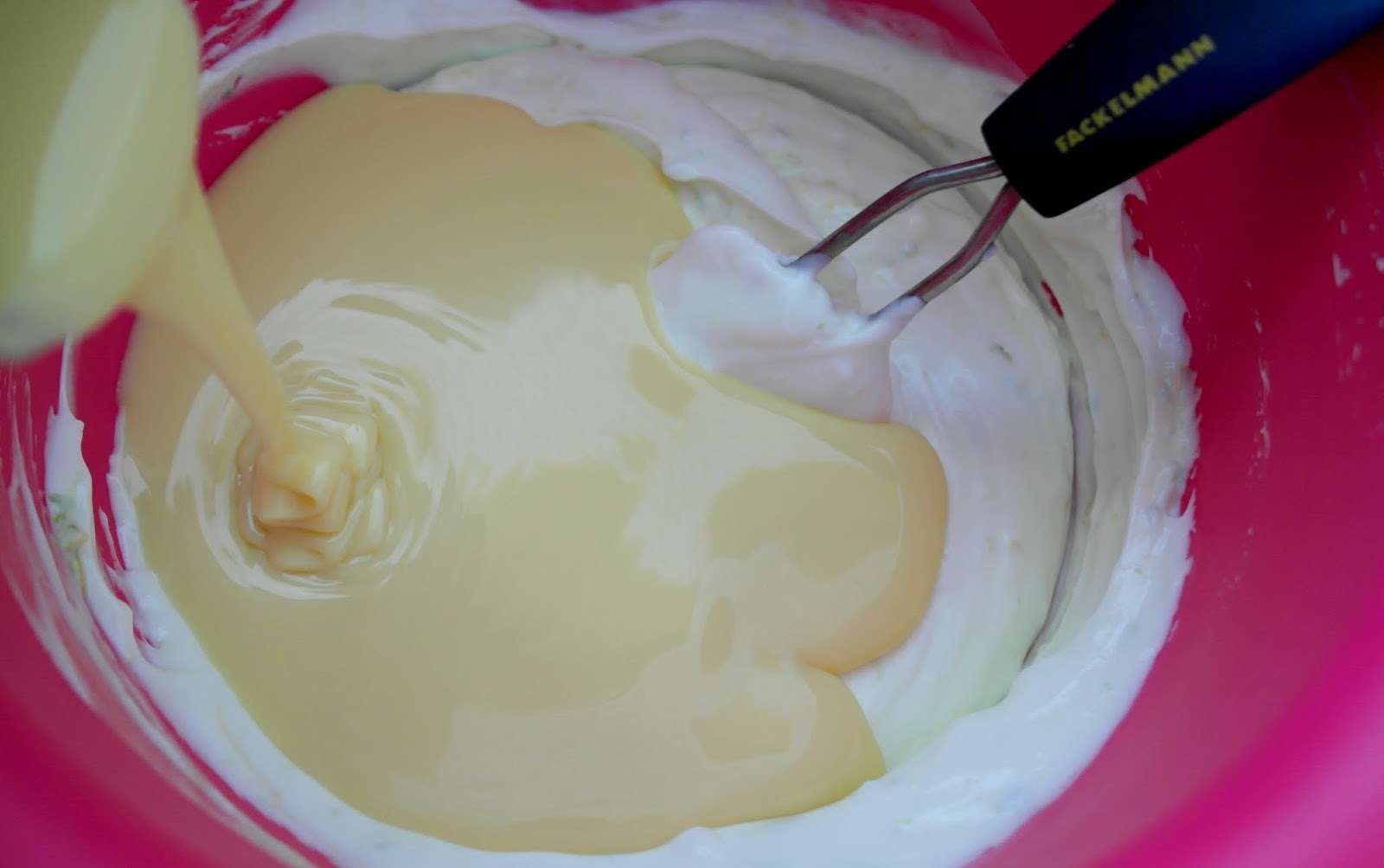 Ανακατεύουμε γιαούρτι με ζαχαρούχο μέχρι το μείγμα να ομογενοποιηθεί.