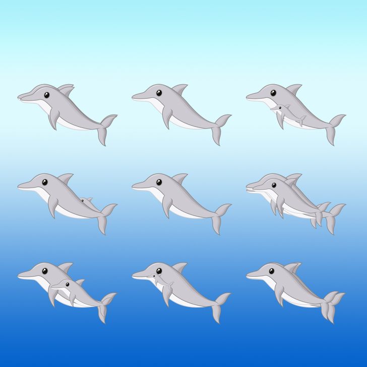 1. Κι όμως είναι 17 δελφίνια! Κάποια πάνε δυο-δυο ενώ άλλα συνοδεύουν το μωρό τους!