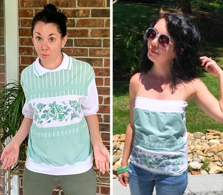 Ίσως από τα πιο άκομψα και ντεμοντέ μπλουζάκια ή και φορέματα που μπορεί να βρει κανείς σε second hand μαγαζί. Κι όμως, μεταποιούνται σ' ένα υπέροχο στράπλες!