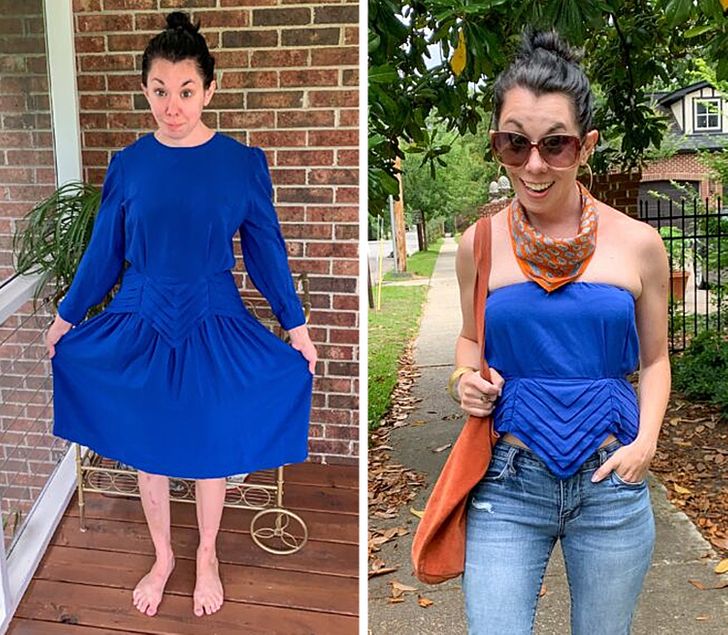 Όχι, δεν πρόκειται για διαφορετικό φόρεμα! Αυτό που έκανε η πολυμήχανη Jillian ήταν να το βάψει σε άλλο χρώμα και να καλύψει το λευκό με άλλο ύφασμα. Πανέξυπνο;