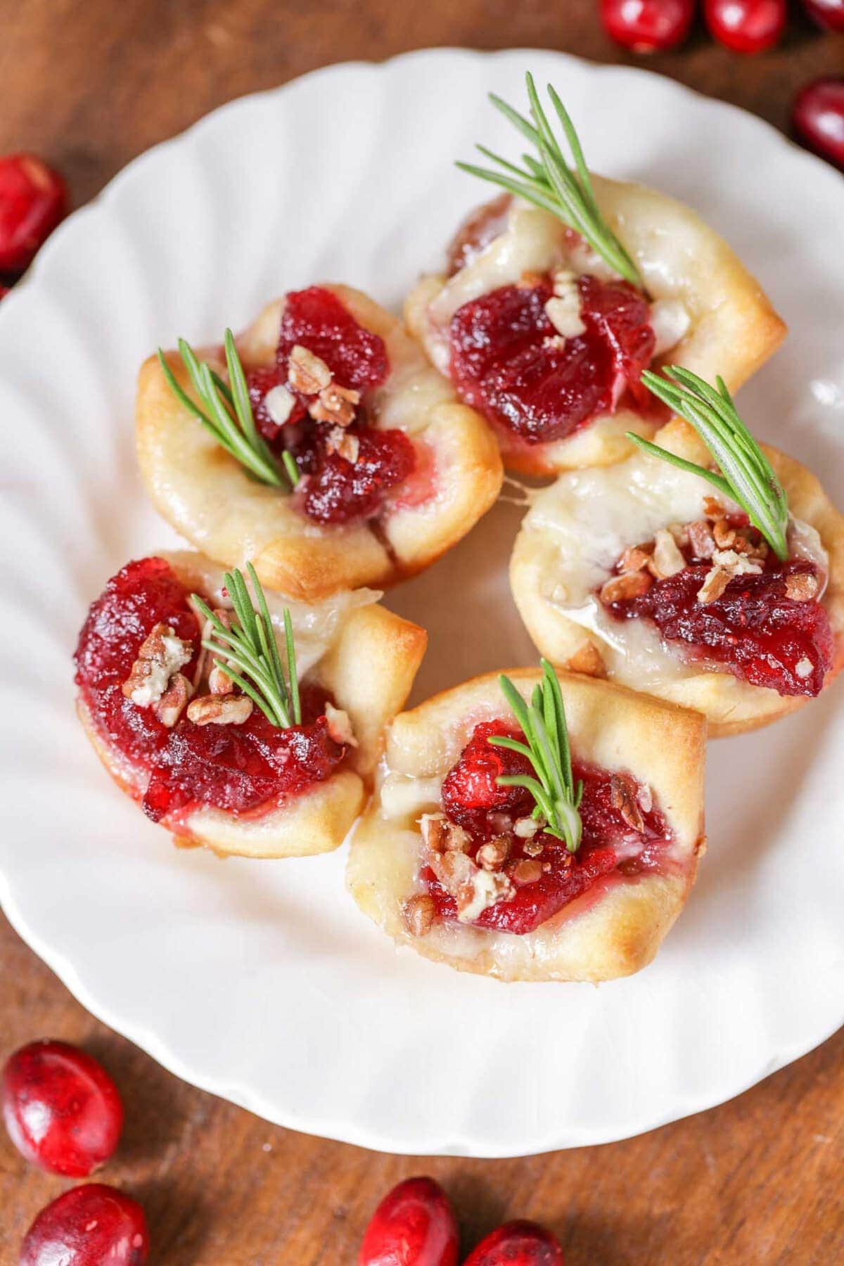 Ξετυλίγουμε τη ζύμη και την κόβουμε σε 18 ορθογώνια. Στη συνέχεια, τα τοποθετούμε σε μια φόρμα για muffins. Kόβουμε το μπρι σε 18 μικρά κομμάτια και το προσθέτουμε στη ζύμη μαζί με ένα κουταλάκι του γλυκού σάλτσα από cranberries. Σε προθερμασμένο φούρνο στους 180 βαθμούς, ψήνουμε για 10-12 λεπτά μέχρι να ροδίσει η ζύμη και να λιώσει το τυρί. Οι χριστουγεννιάτικες μπουκίτσες σερβίρονται ζεστές!