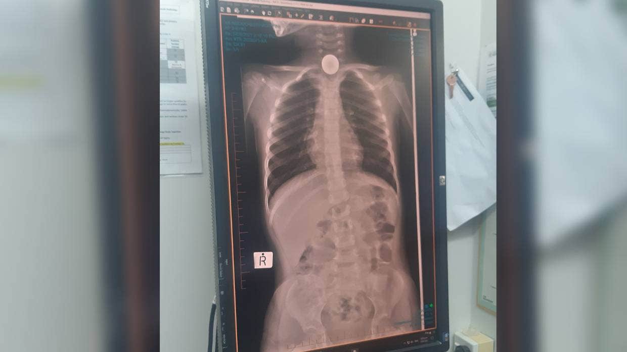 Το νόμισμα -που ήταν και το πρώτο χαρτζιλίκι που έλαβε η μικρή - είχε «καθίσει» σε πολύ άσχημο σημείο, όπως έδειξε η ακτινογραφία, θέτοντας σε κίνδυνο τη ζωή της μικρούλας.