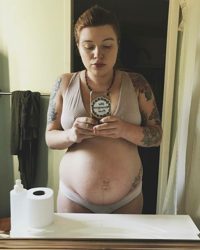 «Μοιάζω σαν να είμαι ακόμα έγκυος αλλά δεν είμαι. Το σώμα μου έχει παραπάνω κιλά, ραγάδες και κυτταρίτιδα. Ωστόσο, αυτή η φωτογραφία τραβήχτηκε απ' τον υπέροχο άντρα μου και τα λέει όλα. Ποτέ μου δεν ένιωσα τόσο δυνατή.»