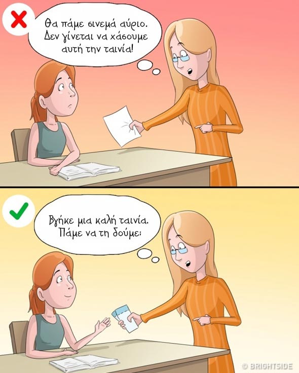 Τι να κάνετε: όταν θέλετε να του μάθετε ν’ αλλάξει κάποιες συνήθειες, εξηγήστε του τον λόγο της επιλογής σας και συνδέστε το με κάτι θετικό, όπως στο παράδειγμα της φωτογραφίας. Πολλές φορές, αυτή η τακτική μπορεί να κάνει θαύματα!