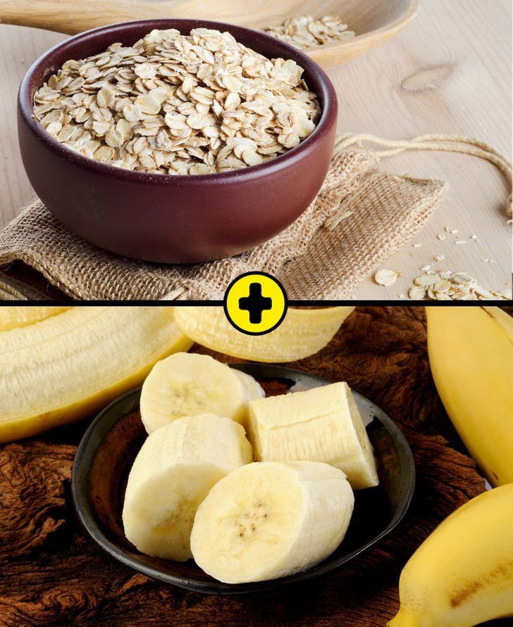 - Ανακατέψτε τη βρώμη και την πολτοποιημένη μπανάνα σε ένα μπολ.