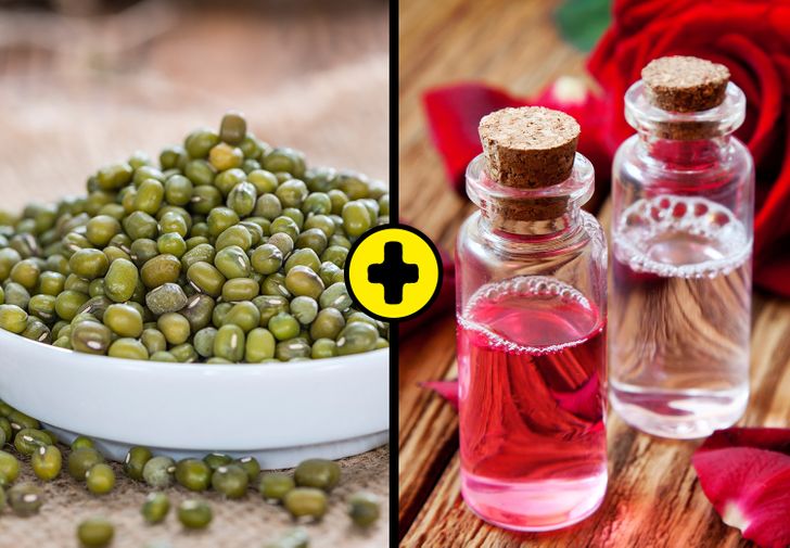 - Τοποθετήστε τον αρακά και το ροδόνερο σε ένα μπολ και ανακατέψτε τα καλά.