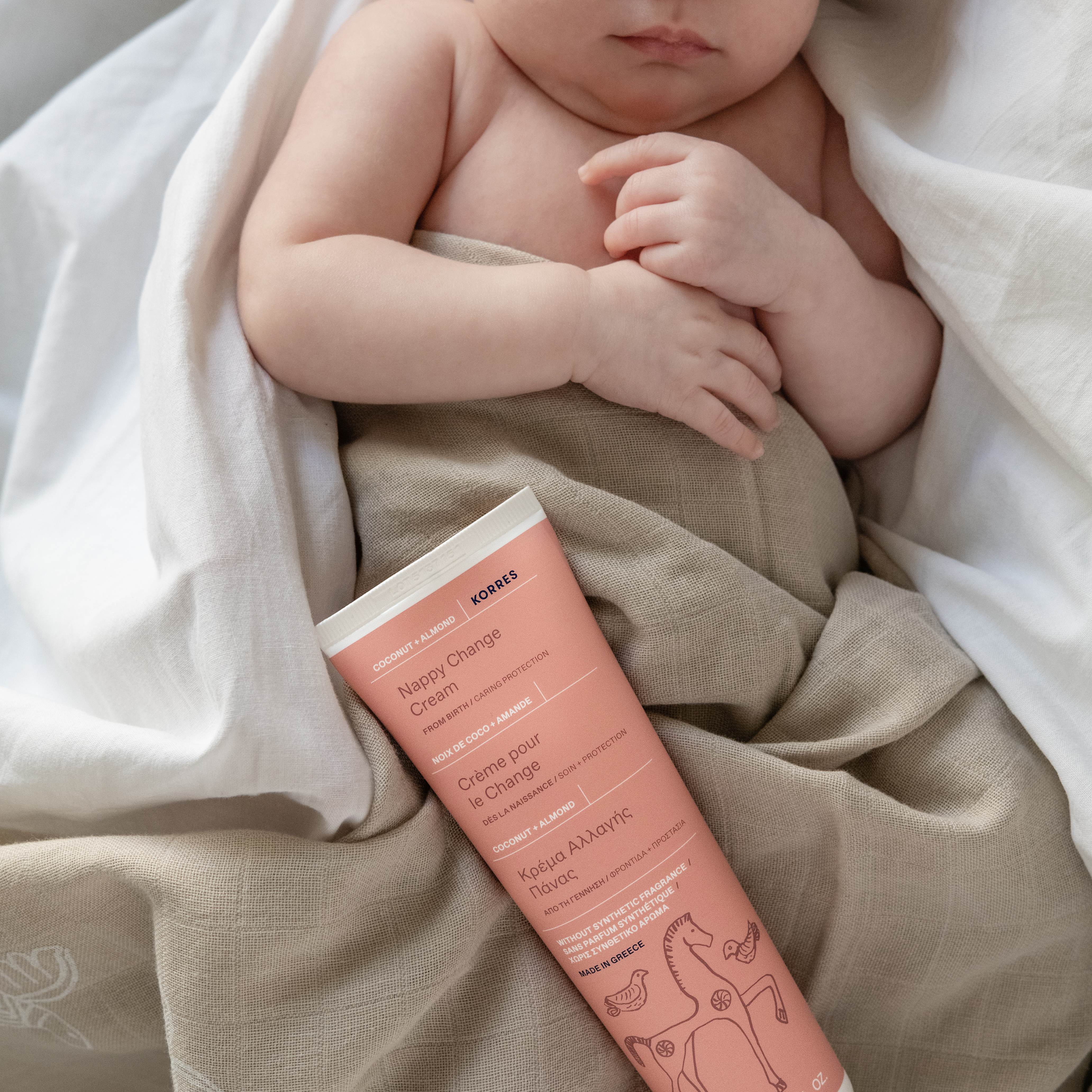 - Οι επιστήμονες του KORRES Molecular Lab έθεσαν στο επίκεντρο τα υψηλής καθαρότητας φυτικά έλαια καρύδας και αμυγδάλου -τα πιο ασφαλή και ενδελεχώς μελετημένα ultra-pure φυσικά συστατικά για βρέφη. Το έλαιο καρύδας υψηλής καθαρότητας, πλούσιο σε λιπαρά οξέα, βελτιώνει τα επίπεδα ενυδάτωσης του ευαίσθητου βρεφικού δέρματος όπου η απώλεια νερού είναι πιο έντονη, διατηρώντας την υγιή όψη του, χωρίς κίνδυνο ερεθισμών. Στο ίδιο ασφαλές πλαίσιο δράσης, το έλαιο αμυγδάλου υψηλής καθαρότητας -πηγή βιταμινών, ιχνοστοιχείων και λινολεϊκού οξέος- ενυδατώνει, θρέφοντας το δέρμα, καταπραϋνει την ξηρότητα και διατηρεί την απαλότητά του, χωρίς ίχνη λιπαρότητας.