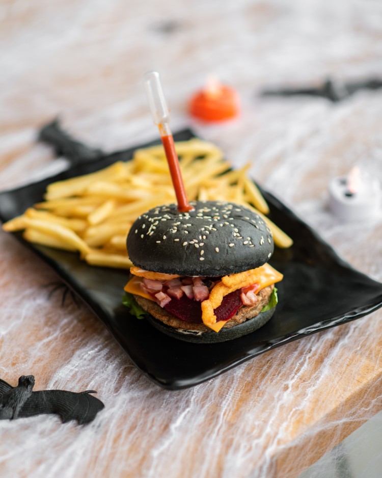 Ο συνδυασμός του μαύρου ψωμιού με την πικάντικη, κατακόκκινη sriracha σως είναι το ξεχωριστό χαρακτηριστικό των δύο burgers, που δημιουργεί από την πρώτη κιόλας ματιά συνειρμούς σχετικούς με τη συναρπαστική βραδιά του Halloween. Τα Limited Edition Halloween burgers είναι σχεδιασμένα ώστε να ενεργοποιούν όλες τις αισθήσεις, αφού κάθε τραγανή δαγκωνιά αποκαλύπτει αναπάντεχες γεύσεις. Όπως, για παράδειγμα, τα crunchy γαριδάκια και το παντζάρι στο πρωτότυπο burger “Dracula”, αλλά και ο συνδυασμός του κλασικού μπιφτεκιού με το τραγανό κοτόπουλο στο «θηριώδες» tower burger “Monster”!