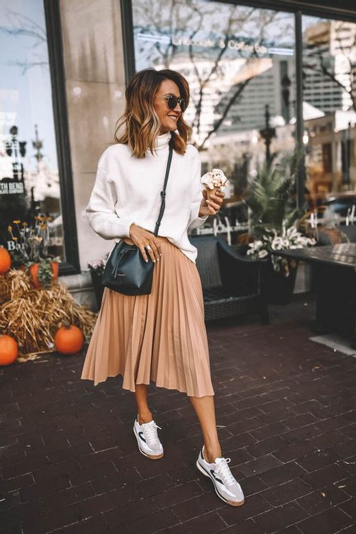 Μπορείτε να επιλέξετε όποιο ύφασμα θέλετε στη φούστα, αρκεί το μάκρος της να είναι μάξι ή να φτάνει μέχρι το γόνατο.