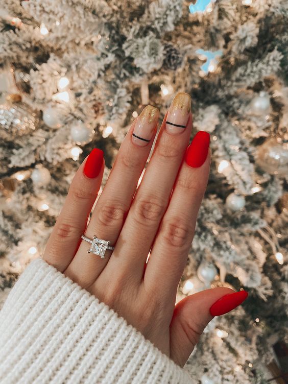 Φυσικά, το κόκκινο χρώμα και οι αποχρώσεις του είναι άμεσα συνδεδεμένα με τα Χριστούγεννα και δεν γίνεται να απουσιάζουν από τη λίστα. Ματ βερνίκι, γκλίτερ ή χρυσά αυτοκόλητα χαρίζουν γιορτινό και κομψό αποτέλεσμα.