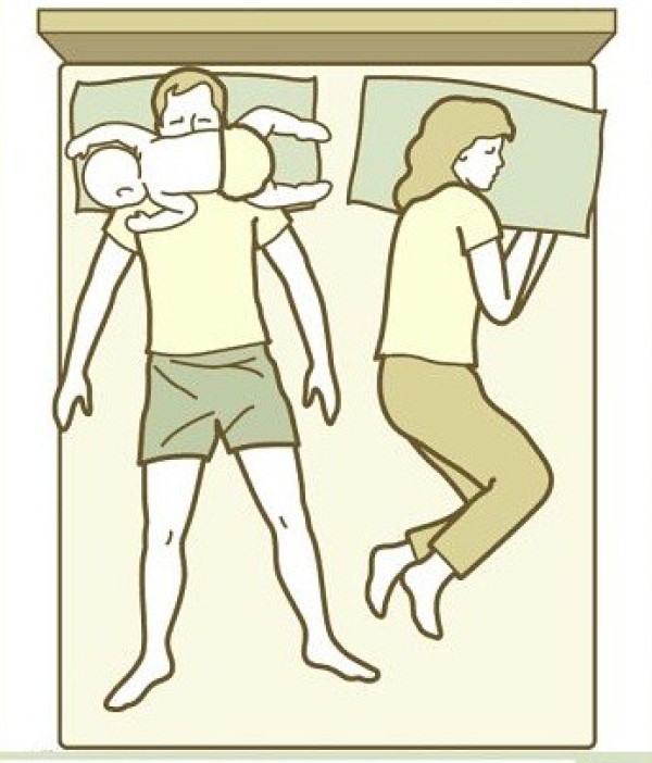 Μία επίσης συνηθισμένη στάση είναι όταν το μωρό δεν κοιμάται απλά στο κρεβάτι μας αλλά πάνω μας, και μάλιστα, πάνω στο πρόσωπο ή τον λαιμό μας! Πόσες φορές δεν ξυπνήσαμε με τα χέρια του να πασπατεύουν τα μάτια και την μύτη μας ή την ανάσα μας κομμένη επειδή το αγγελούδι μας βολεύτηκε στον λαιμό μας; Κανείς δεν λέει ότι δεν είναι υπέροχο να κοιμάσαι αγκαλιά με τα παιδιά σου αλλά μερικές φορές, κατά τη διάρκεια της νύχτας, η κατάσταση ξεφεύγει…
