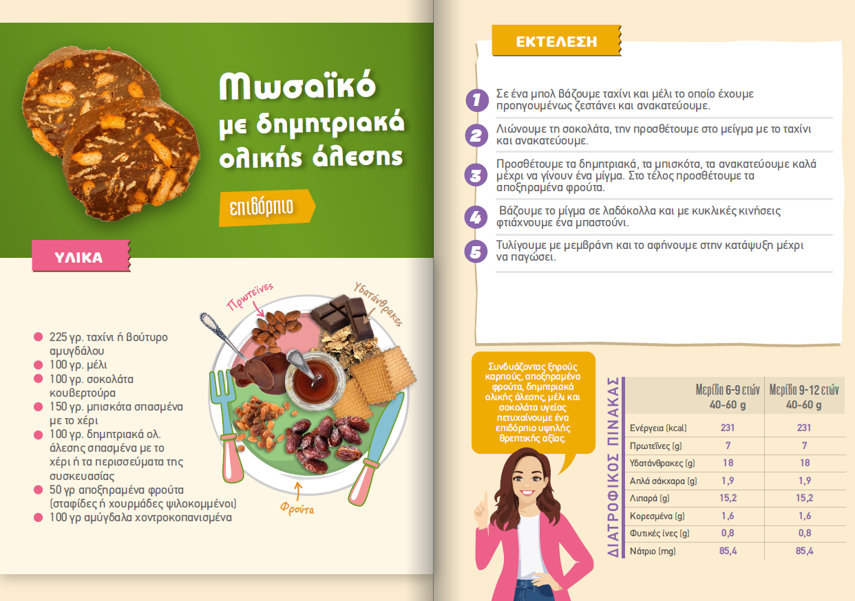 Το ηλεκτρονικό μας βιβλίο περιλαμβάνει νόστιμες και υγιεινές συνταγές, τρόπους μαγειρέματος αλλά και τη διατροφική τους ανάλυση, επιμελημένες από επιστήμονες διαιτολόγους. Το e-book αυτό αποτελεί σημαντικό εργαλείο για την εκπαίδευση της οικογένειας, για την υγεία όλων μας αλλά και για έναν καλύτερο πλανήτη.