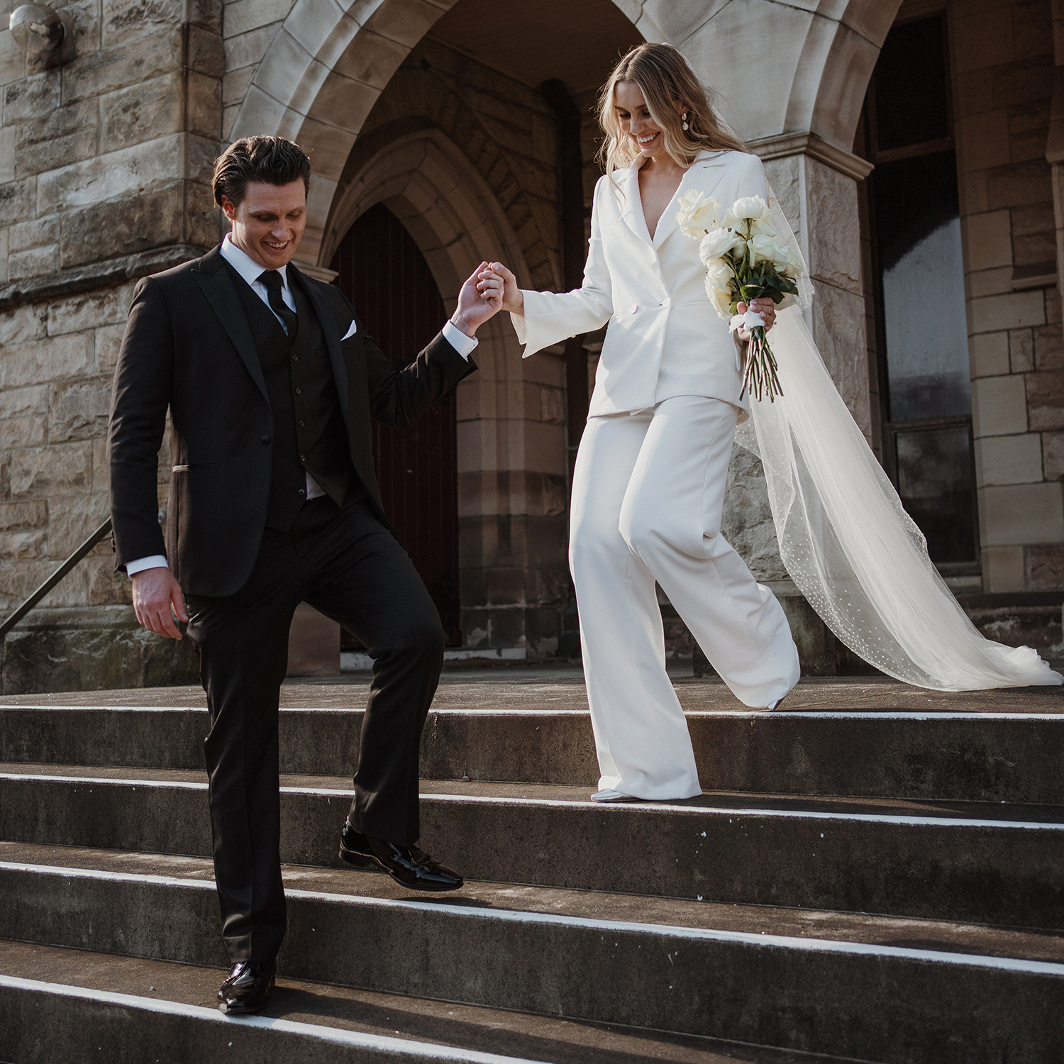 Αρκετά με το παραδοσιακό νυφικό φόρεμα! Μια γυναίκα μπορεί να πάει στην εκκλησία ή το δημαρχείο και με κοστούμι και να είναι το ίδιο θηλυκή και εντυπωσιακή.