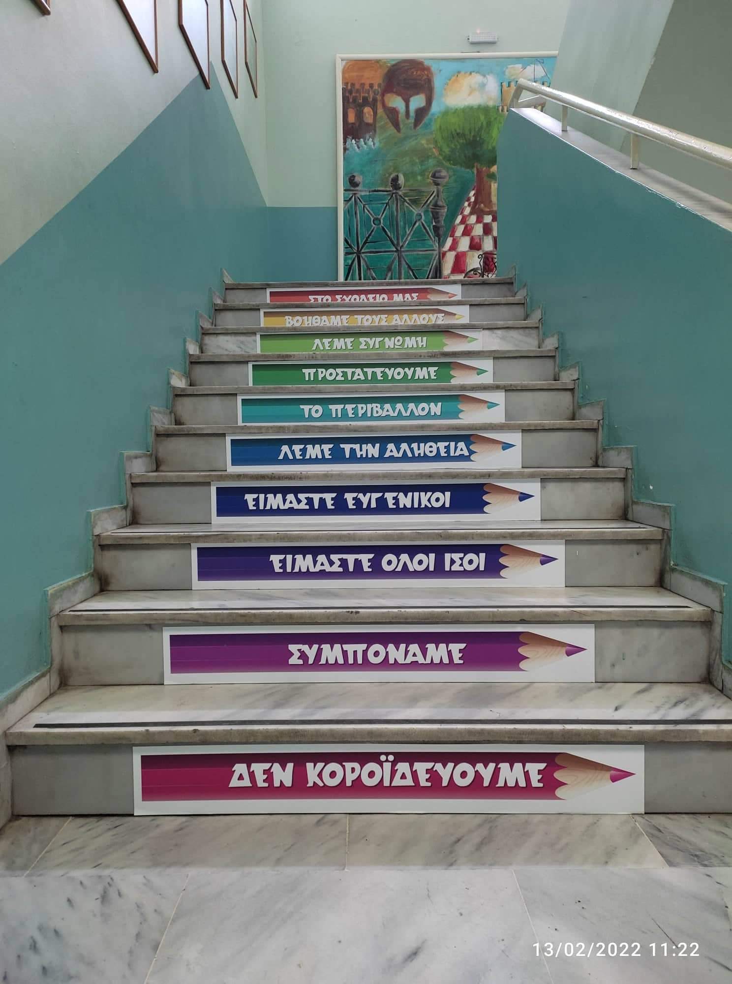 Βάζοντας όλο τους το μεράκι, ζωγράφισαν επιτραπέζια παιχνίδια στο δάπεδο του σχολείου και έγραψαν στις σκάλες που ανεβοκατεβαίνουν οι μαθητές όμορφα μηνύματα που προσφέρουν σπουδαία μαθήματα ζωής.