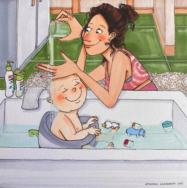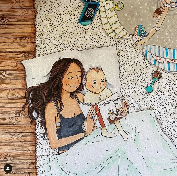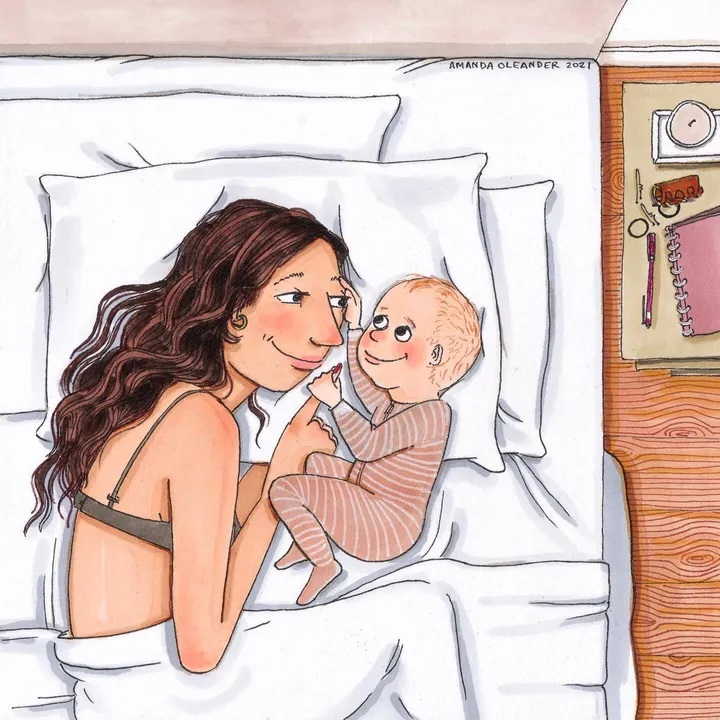 Η καλλιτέχνης και νέα μαμά Amanda Oleander σκιτσάρει με τον πιο τρυφερό τρόπο τους πρώτους μήνες της γονεϊκότητας και η δουλειά της ενθουσιάζει όσους την ακολουθούν. Τον Μάιο του 2021, αυτή και ο σύζυγός της Joey καλωσόρισαν το πρώτο τους παιδί, τον Benny. Έκτοτε ο γιος της, τώρα 8 μηνών, αποτελεί βασική πηγή έμπνευσης για τη δουλειά της.