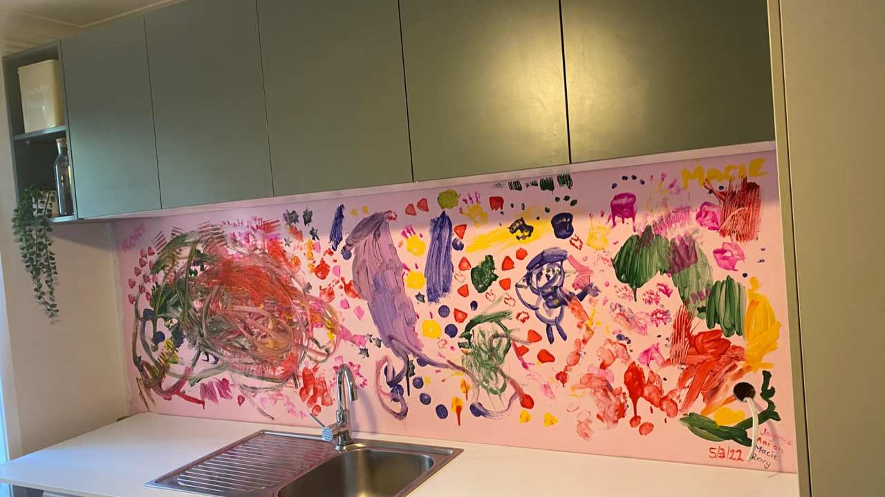 Η οικογένεια είχε μετακομίσει πρόσφατα στο καινούργιο της σπίτι και η δεύτερη κουζίνα δεν είχε βαφτεί ακόμα. Έτσι η μαμά αποφάσισε να αναθέσει στην κόρη και τον γιο της μια σπουδαία αποστολή: να ζωγραφίσουν έναν τοίχο όπως εκείνα θέλουν!