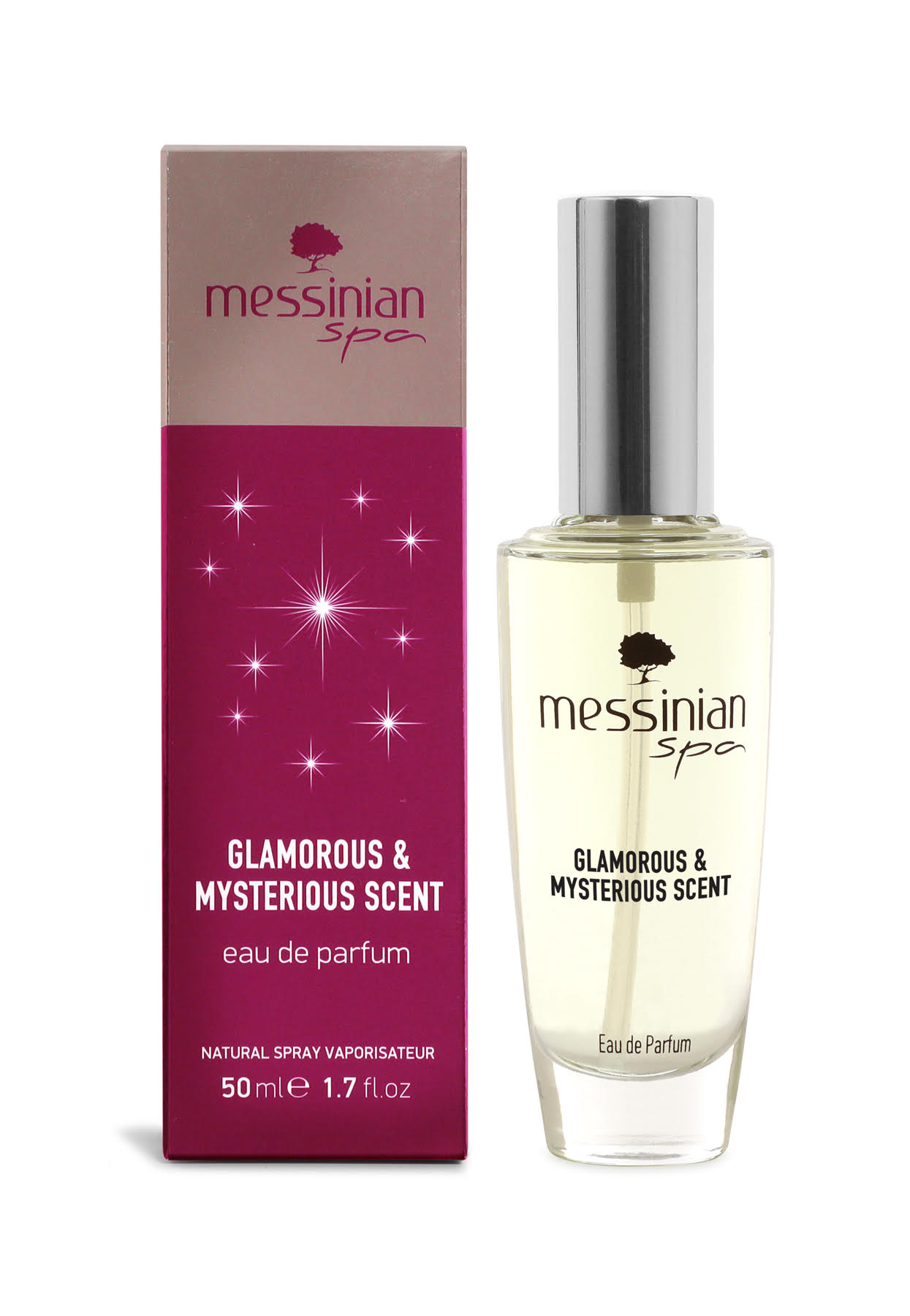 Το Messinian Spa Glamorous eau de parfum είναι ένα κεχριμπαρένιο, λουλουδένιο άρωμα για γυναίκες και έχει ένα θερμό, ξεχωριστό άρωμα. Οι νότες κορυφής είναι ροζ πιπέρι, καφές, περγαμόντο και λεμόνι. Οι μεσαίες νότες είναι κρίνος, γιασεμί και γαρδένια. Οι νότες της βάσης είναι σπόρος τόνκα, κακάο, βανίλια, κεχριμπάρι, μόσχος, κανέλα και κέδρος.