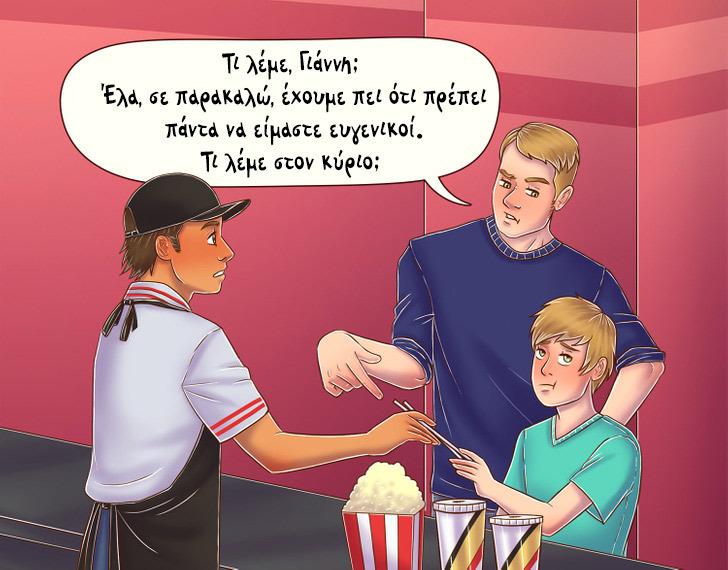 Πώς να ζητήσουμε απ' τα παιδιά μας να δείχνουν ευγένεια και σεβασμό, αν δεν μας έχουν δει να φερόμαστε αντίστοιχα; Παραχώρησε τη θέση σου στο μετρό σε κάποιον που τη χρειάζεται, βοήθησε τον γείτονα που κουβαλάει τέσσερις χιλιάδες πράγματα, μίλα με ευγένεια σε όσους σε εξυπηρετούν.